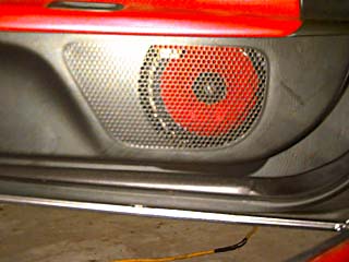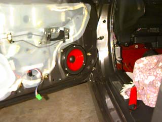 The left woofer mounted in the basket in the door. |